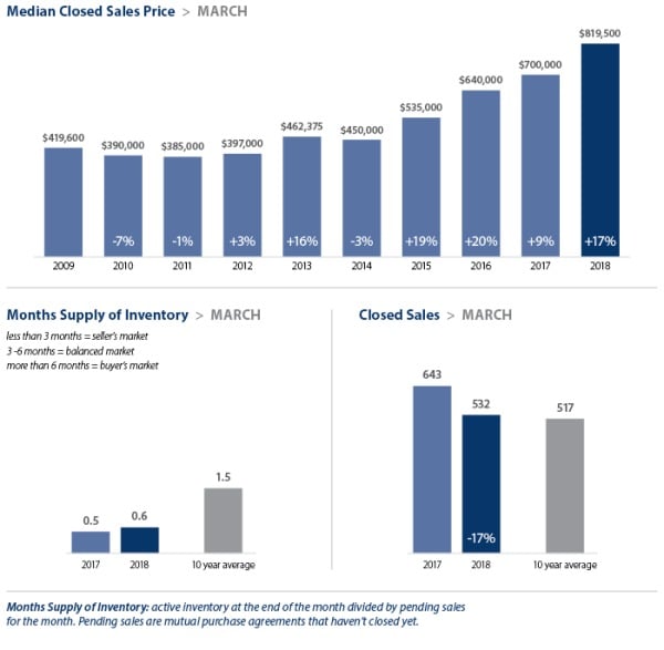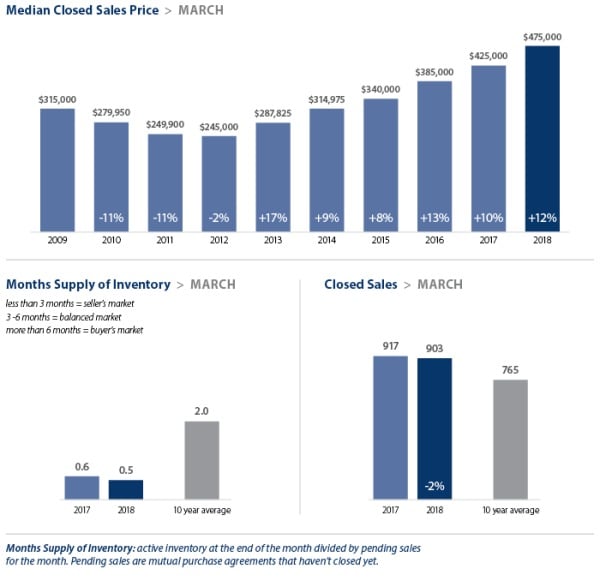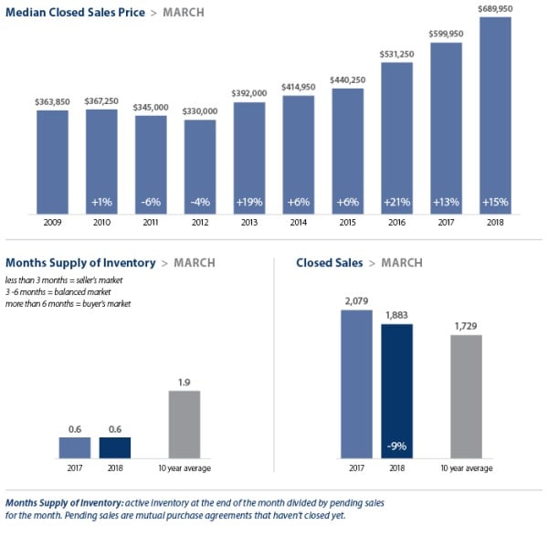 Despite the typical seasonal surge in new listings, supply in our area continued to fall far short of demand in March. With just two weeks of available inventory in every market, competition for homes is intense. The result was another month of double-digit price increases as compared to a year ago. The region has now led the country in home price increases for 17 months in a row. The prediction for the spring market: HOT with no signs of cooling.